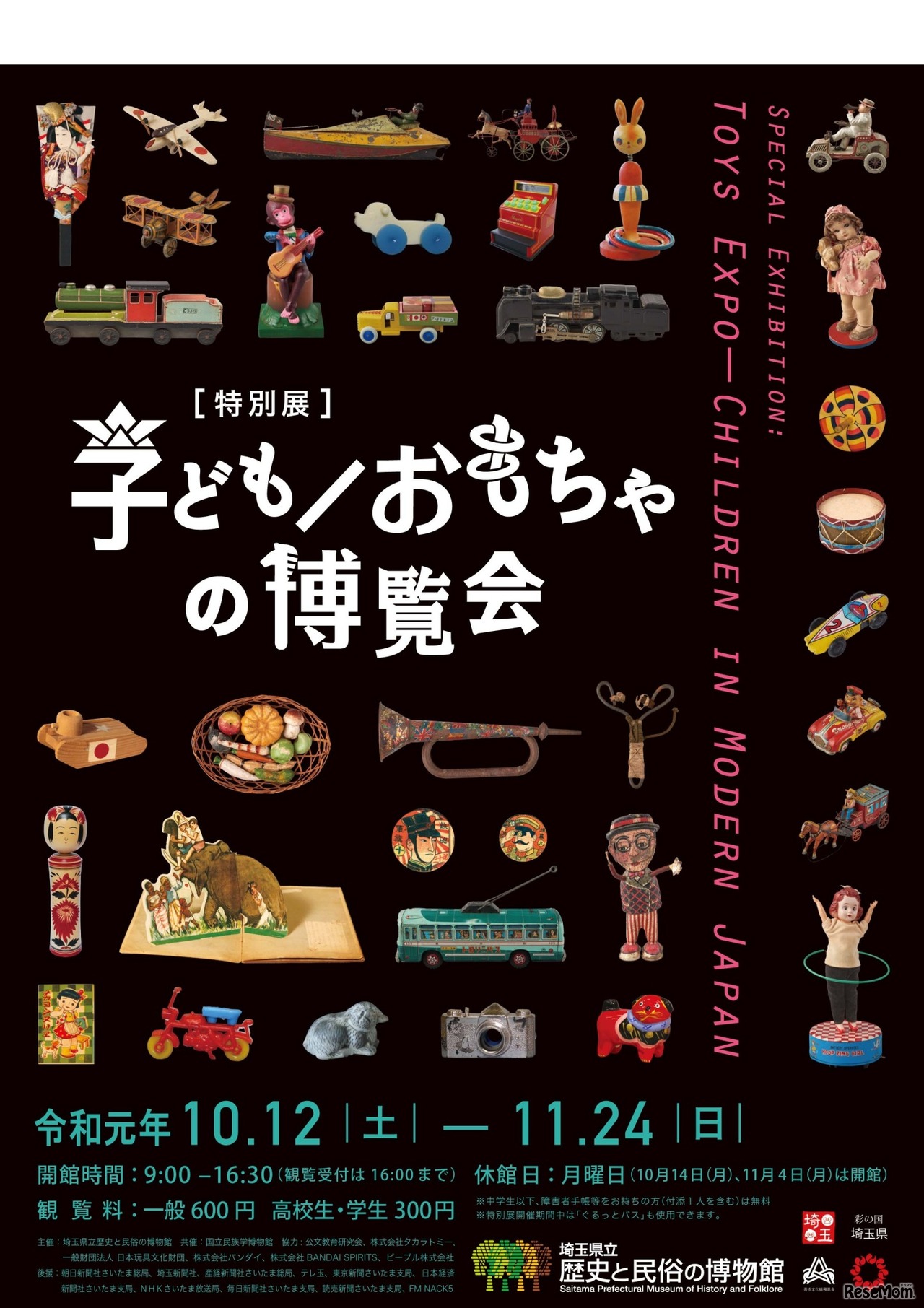 埼玉県立歴史と民俗の博物館は2019年10月12日から11月24日まで、江戸時代から現代に至るまでのさまざまなおもちゃや歴史について紹介する特別展「子ども/おもちゃの博覧会」を開催する。観覧料は一般600円、高校生・学生300円、中学生以下無料。