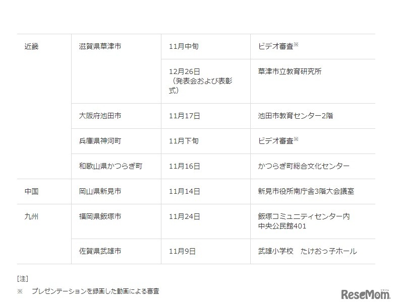各自治体が開催する2次予選の概要(近畿~九州)