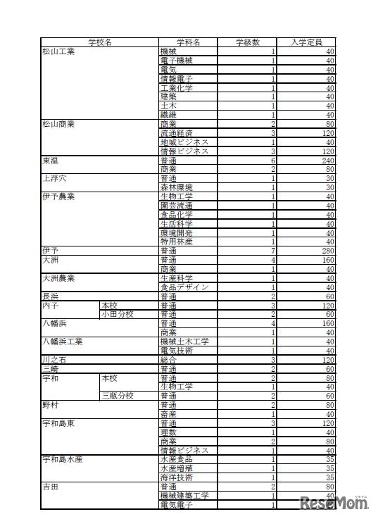 【高校受験2020】愛媛県立高の募集定員、40人減の9,185人 2枚目の写真・画像