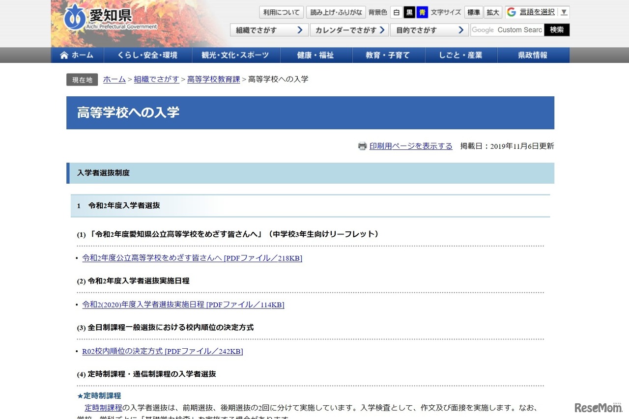 愛知県教育委員会は2019年11月6日、令和2年度(2020年度)愛知県立高校生徒募集計画について発表した。県内国公立高校全日制の募集人員は、前年度(2019年度)比320人減の4万3,240人。私立高校では前年度比161人減の2万1,569人を募集する。