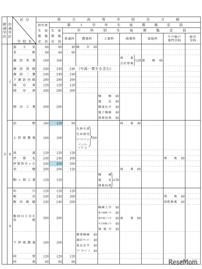 長野県教育委員会は2019年11月11日、2020年度の「公立高等学校生徒募集定員」を公開した。公立高校全日制普通科は前年度360人減の9,080人となり、普通科を含め全学科の募集定員は1万4,360人で前年度から480人減となった。