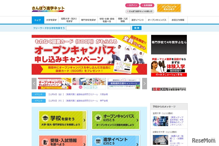 さんぽう進学ネットは2019年12月14日、京都府内の専門学校4校で「職業体験フェスタ」を開催する。当日は、福井や岡山、滋賀など6コースで無料送迎バスを運行する。参加申込はWebサイト、FAX、電話にて受け付けている。