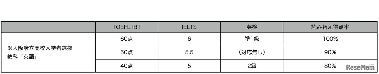 出典:大阪府教育庁 外部検定テストとの連動性(換算表)