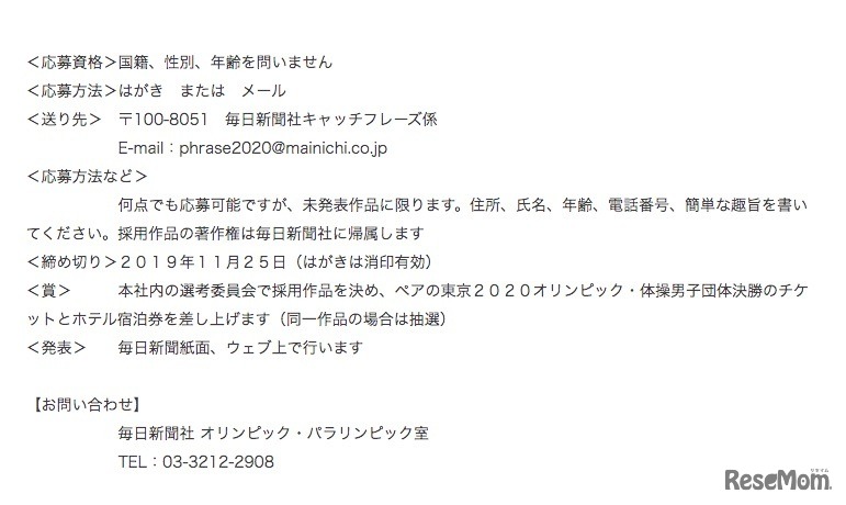 毎日新聞社による東京オリンピックのキャッチフレーズ募集 応募方法など