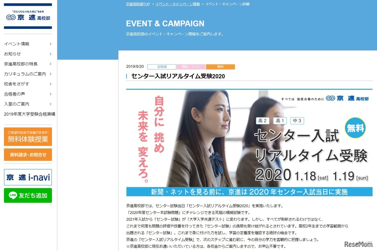 東進と京進、河合塾は2020年度(令和2年度)大学入試センター試験当日の2020年1月18日と19日、センター試験や共通テストの問題に挑戦できるイベントを開催する。おもな対象は、受験を翌年に控えた高校2年生など。