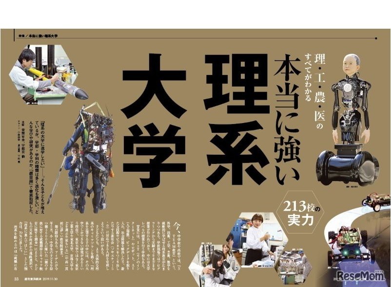 東洋経済新報社は2019年11月25日、週刊東洋経済の11月30日号を発売する。「本当に強い理系大学」をテーマに理・工・農・医213大学の学びや研究、受験、就職などの実力について徹底検証している。定価は730円(税込)。