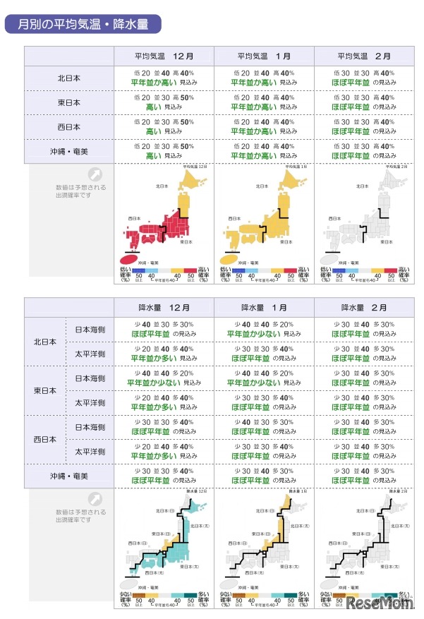 気象庁は2019年11月25日、12月から2月の3か月予報を発表した。気温は全国的に平年並みか高く、北・東・西日本の日本海側の降雪量は、平年並みか少ないと予想される。