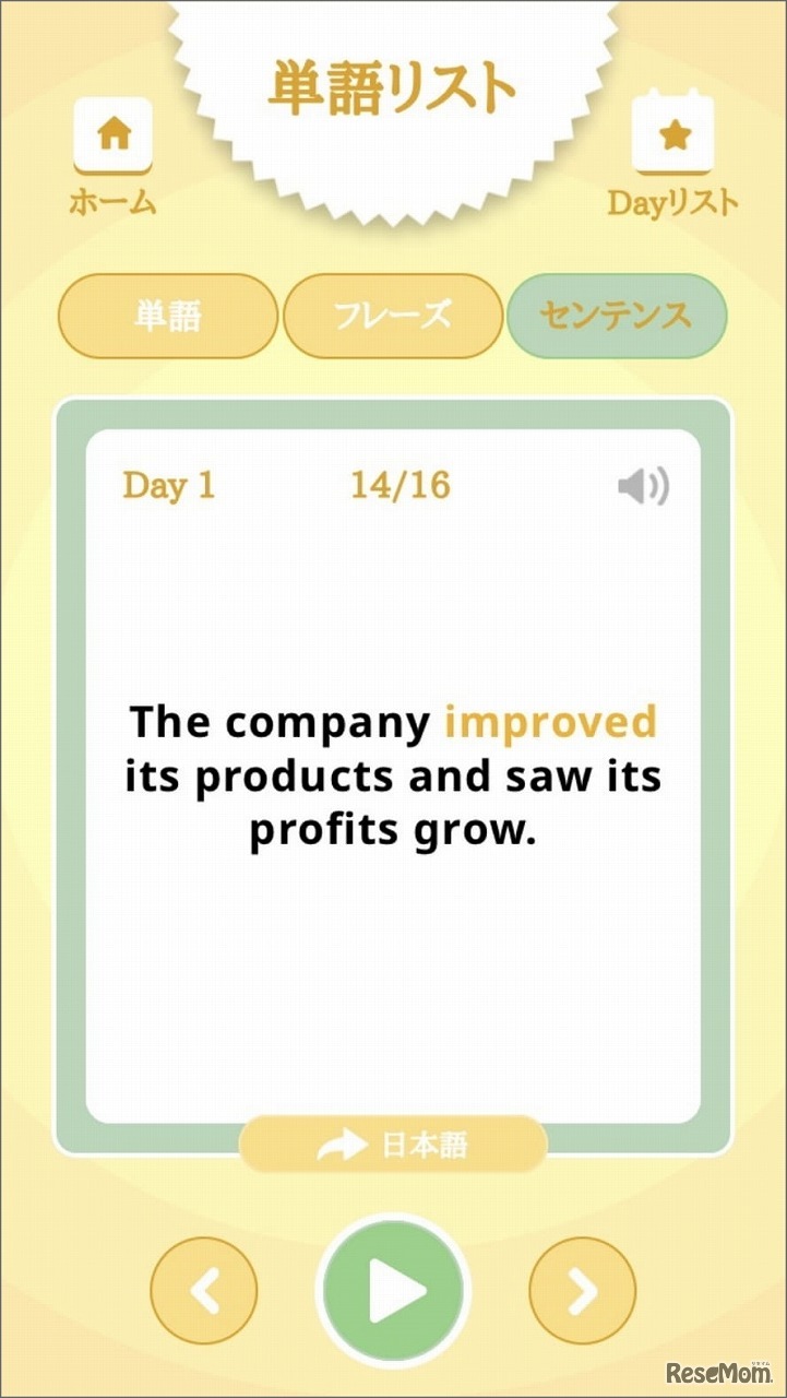 単語、フレーズ、センテンスの音声再生