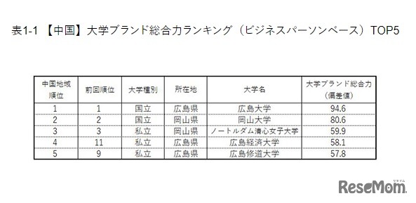 画像出典:日経BPコンサルティング「大学ブランド・イメージ調査(2019-2020)」中国・四国編 【中国】大学ブランド総合力ランキング(ビジネスパーソンベース)TOP5