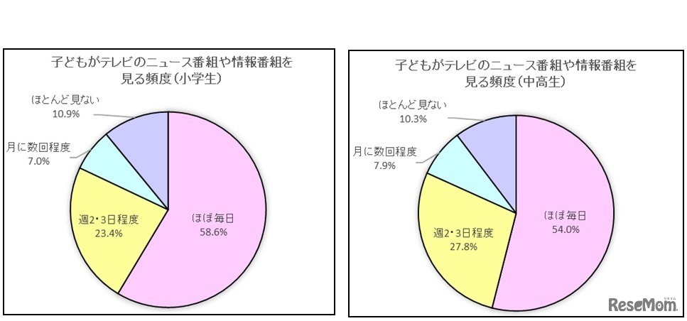 子どもがテレビのニュース番組や情報番組を見る頻度