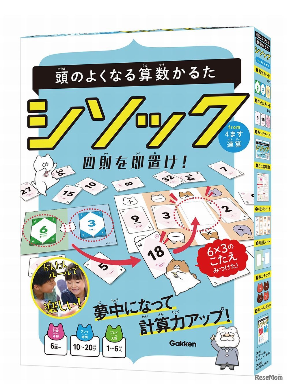 学研プラスは2019年11月28日、たす・ひく・かける・わるの四則計算が遊びながら身に付くカードゲーム「頭のよくなる算数かるたシソックfrom4ます連算」を発売した。価格は1,500円(税別)。