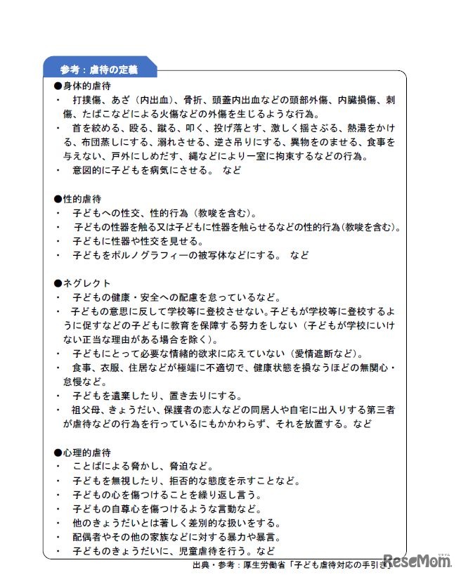 画像出典:厚生労働省「体罰等によらない子育てのために(素案)」 虐待の定義