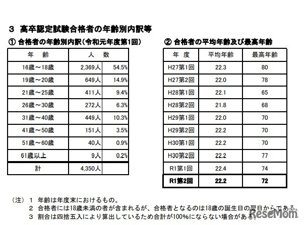 文部科学省は2019年12月12日、2019年度(令和元年度)第2回高等学校卒業程度認定試験(高卒認定試験)の結果を公表した。前年度比1,031人減の9,374人が受験し、高卒認定試験合格者数は前年度比348人減の4,350人だった。