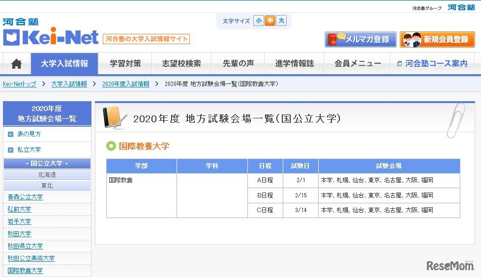 河合塾の大学入試情報サイト「Kei-Net」は2019年12月17日、2020年度入試情報に「地方試験会場一覧(国公立大学)」を掲載した。大学所在地以外の都道府県で試験を実施する国公立大学50校の入試日程や試験会場などの情報をまとめている。