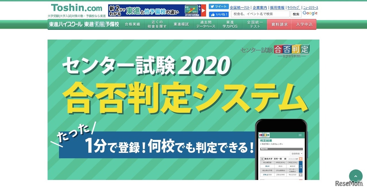 【センター試験2020】東進の合否判定システム、12月下旬から利用開始 1枚目の写真・画像