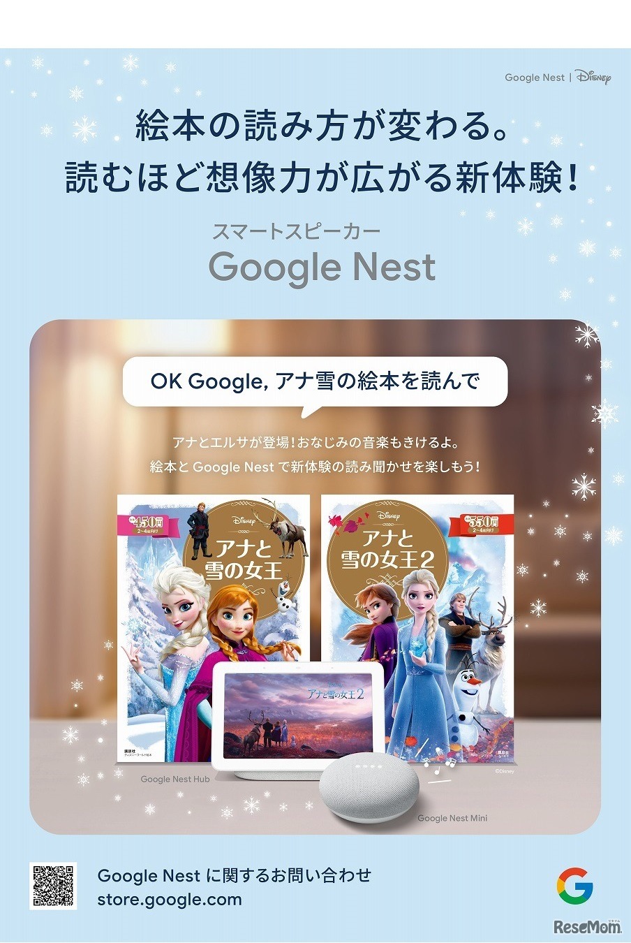 2019年12月23日より、Google Nest製品などで講談社ディズニーゴールド絵本「アナと雪の女王2」の読み聞かせ体験ができる。絵本を見ながら、スピーカーから聞こえる物語と音楽を楽しめる。