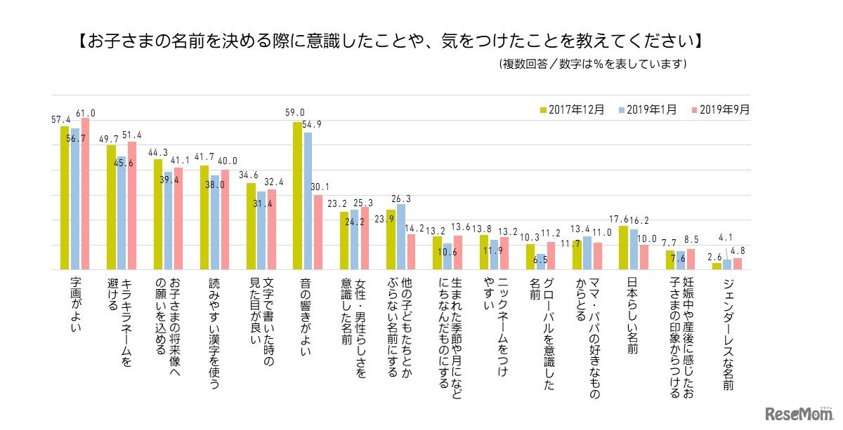 2019年(令和元年)5月から9月生まれの子どもの名づけに、約3割が元号を多少なりとも意識していたことが、三起商行が2019年12月26日に発表した子どもの名づけ調査結果より明らかとなった。