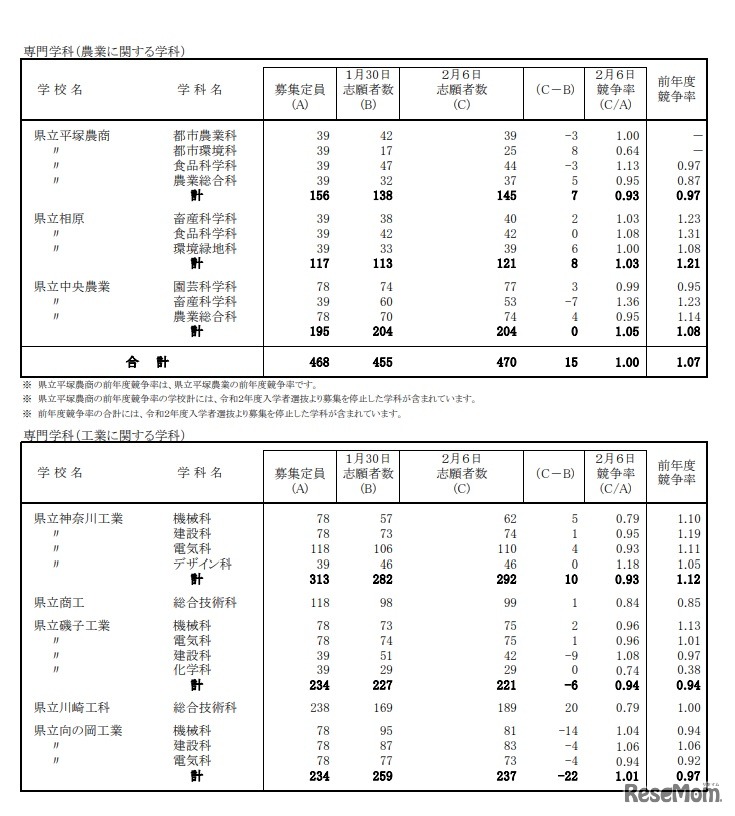 神奈川県教育委員会は2020年2月6日、同日に受付を締め切った2020年度(令和2年度)神奈川県公立高等学校一般募集共通選抜等の志願者数集計結果を公表した。全日制課程の志願状況は、募集人員4万1,280人に対し4万8,275人が出願し、競争率は1.17倍となった。