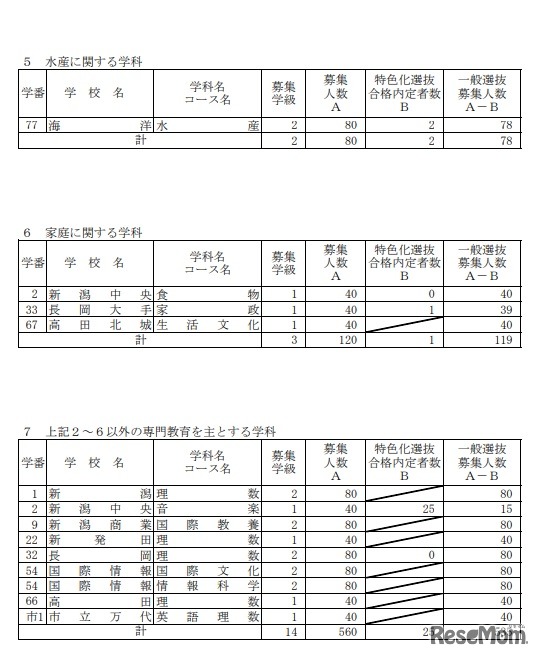 新潟県教育委員会は2020年2月14日、2020年度(令和2年度)新潟県公立高等学校入学者選抜特色化選抜実施状況および一般選抜募集人数を発表した。全日制課程における特色化選抜の合格内定者数は178人、一般選抜で1万3,172人を募集する。