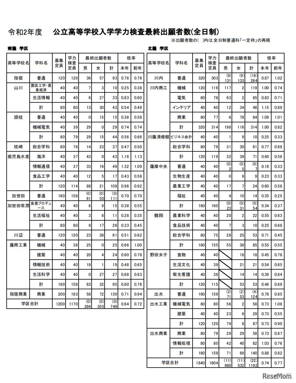 【高校受験2020】鹿児島県公立高、一般選抜の出願状況・倍率(確定)鶴丸(普通)1.34倍など 4枚目の写真・画像