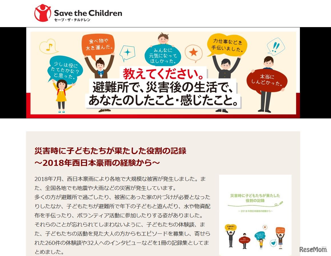子ども支援専門の国際NGOセーブ・ザ・チルドレンは、2018年に起こった西日本豪雨の復興支援の一環として、災害時に子どもたちが感じたことや行動したことをまとめた記録集「災害時に子どもたちが果たした役割の記録~2018年西日本豪雨の経験から~」を発表した。