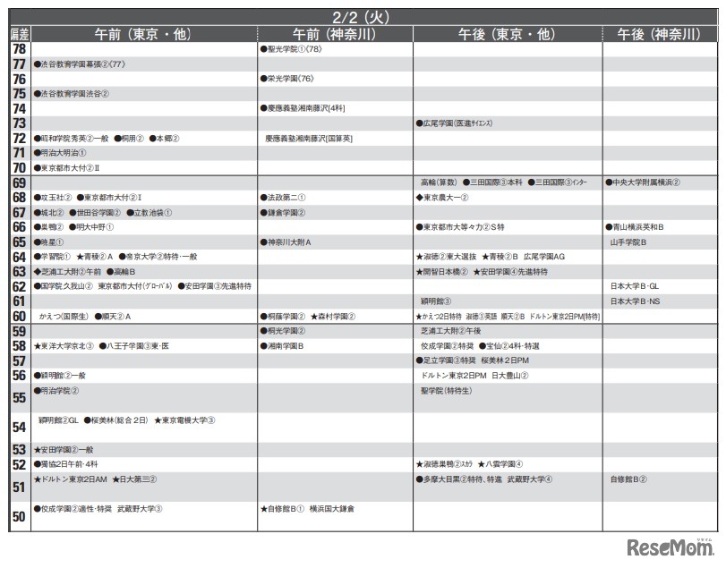 首都圏模試センターは、「2021年中学入試予想偏差値(4月版)」を公開した。合格率80%の偏差値を男女別・日程別にまとめている。男子は、開成と聖光学院(1)、筑波大附駒場が78、女子は桜蔭、慶應義塾中等部などが77。