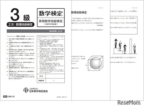画像出典:日本数学検定協会 数学検定・算数検定の過去問題