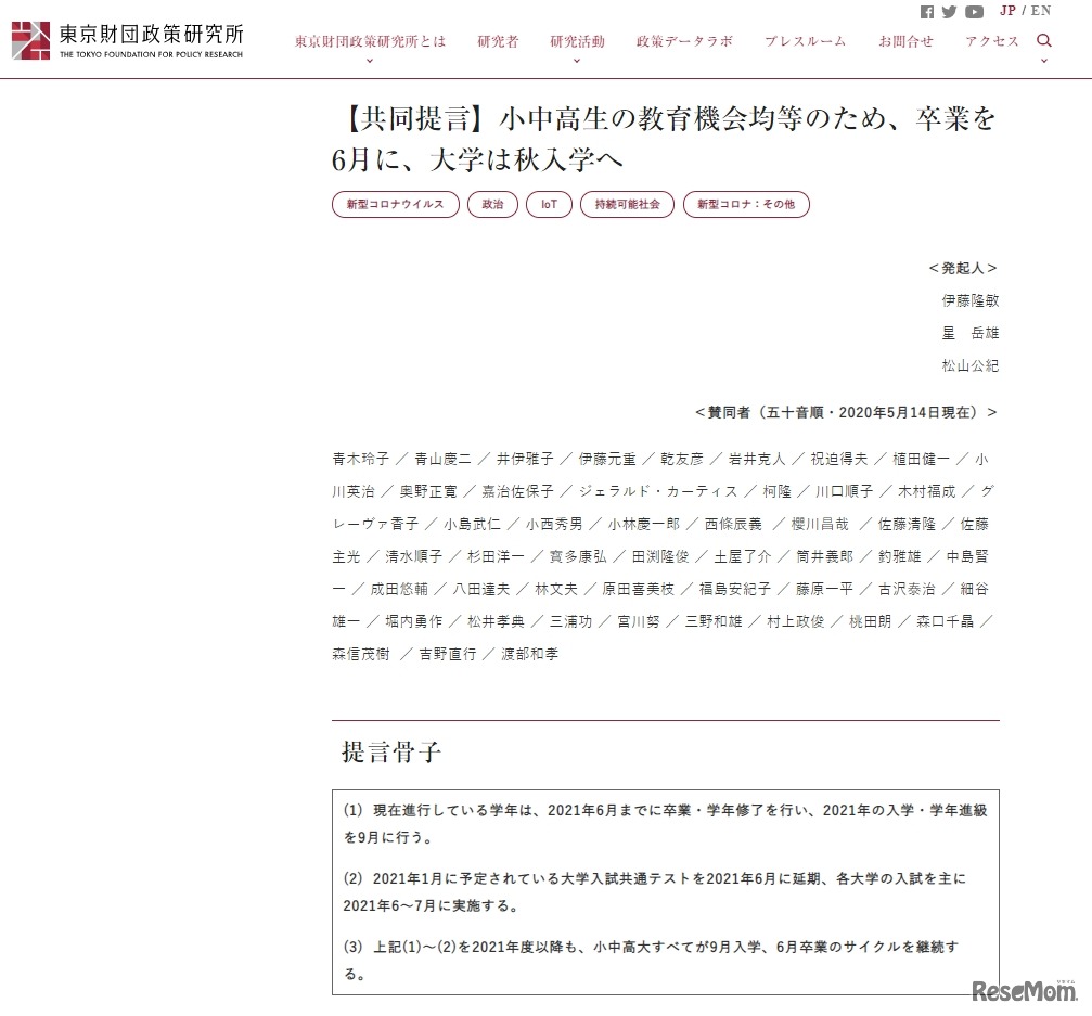 9月入学について、安倍内閣総理大臣は2020年5月14日の記者会見で、「9月入学も有力な選択肢の1つであり、前広に検討していきたい」と述べた。自民党は、「秋季入学制度検討ワーキングチーム」の初会合を5月12日に開催した。