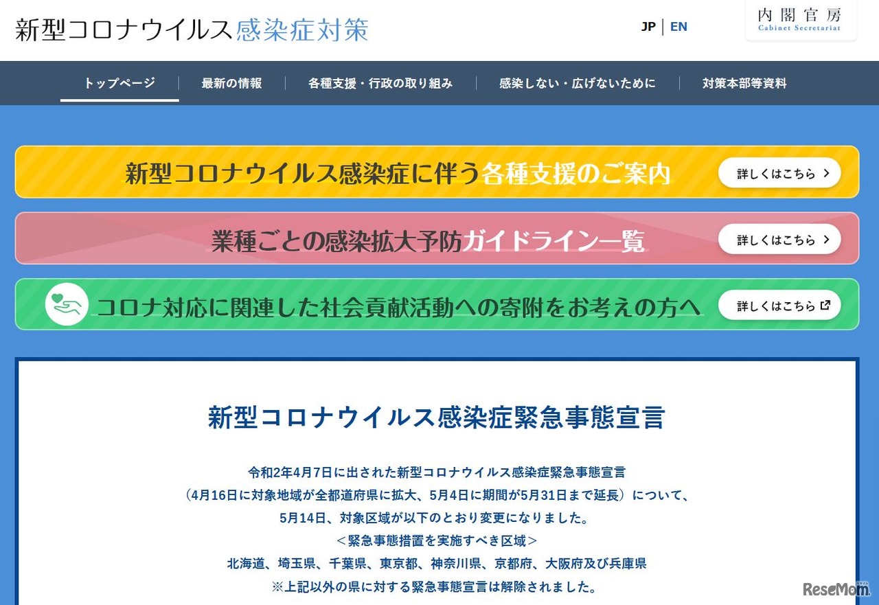 政府は2020年5月14日、新型コロナウイルス感染症緊急事態宣言を39県で解除した。特定警戒都道府県のうち、北海道・埼玉県・千葉県・東京都・神奈川県・京都府・大阪府・兵庫県の8都道府県は、1週間後の21日をめどに解除の可否を専門家が評価する。