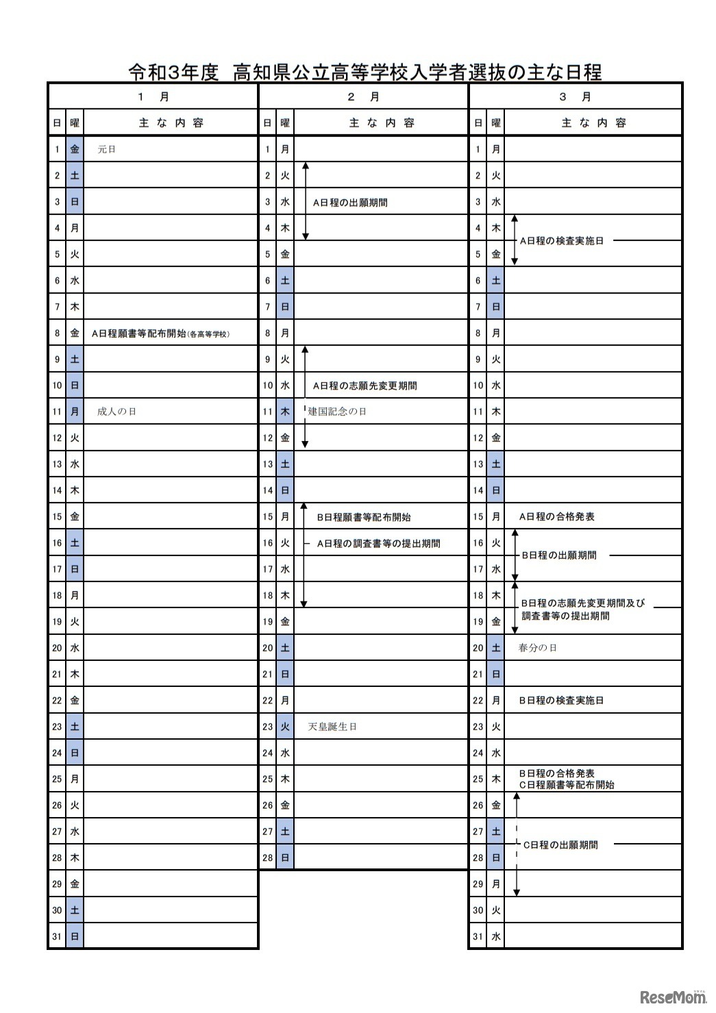 高知県教育委員会は2020年5月19日、2021年度(令和3年度)高知県公立高校入学者選抜のおもな日程、入学定員、学力検査出題の方針を発表した。高知国際高校は2021年開校に向け入学者を募集開始、高知南高校と高知西高校は高知国際高校への統合により募集を停止する。