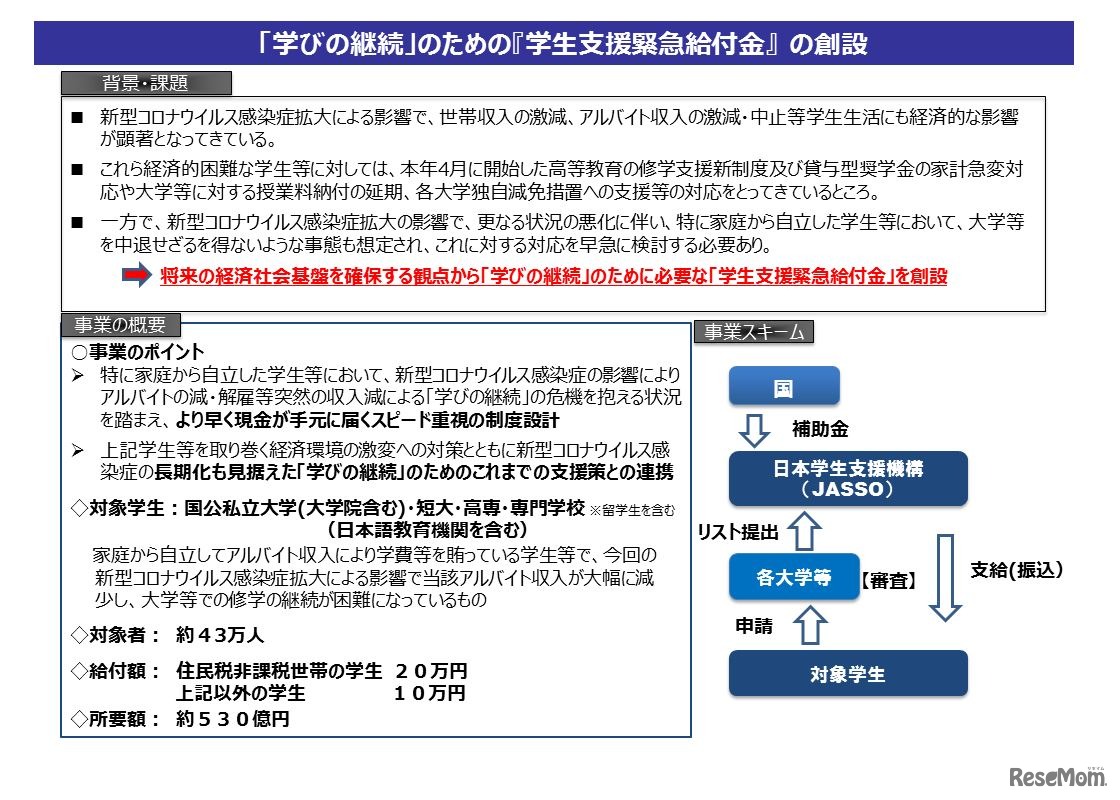「学生支援緊急給付金」の概要