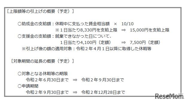 厚生労働省は2020年5月26日、新型コロナウイルス感染症による小学校休業等対応助成金・支援金の上限額の引上げと対象期間の延長を発表した。助成金の上限を日額1万5,000円、支援金を1日定額7,500円に引き上げ、対象期限を9月30日、申請期間を12月28日まで延長する。