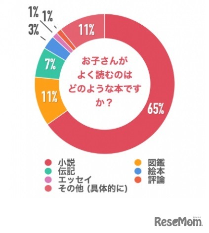 中学受験を目指している子どもがよく読む本は「小説」65%がもっとも多いことが、中学受験の情報ポータルサイト「かしこい塾の使い方」の調査結果より明らかになった。入試ではさまざまな種類の文章が扱われるため、多くのジャンルの文章に触れると良いという。