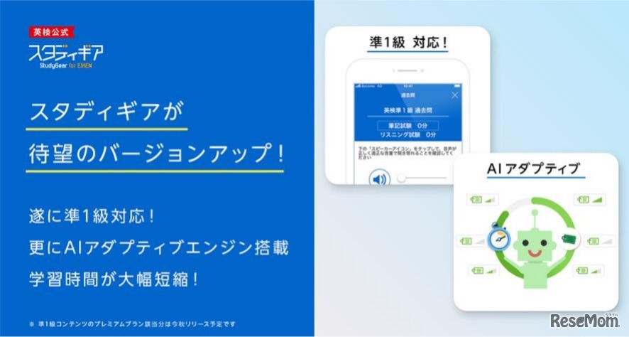 日本英語検定協会(英検協会)とEduLab(エデュラボ)グループの教育測定研究所は、共同提供する英検公式「スタディギア for EIKEN」を大幅バージョンアップした。英検準1級レベル相当の学習コンテンツと、より短時間で英語力をアップできる新機能を追加している。