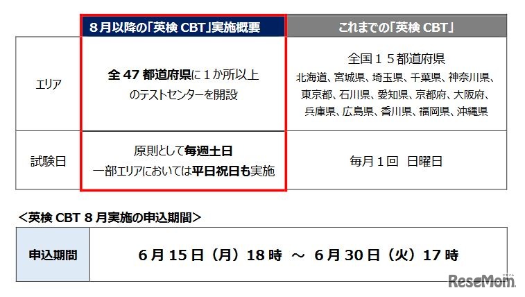 日本英語検定協会(英検協会)は2020年5月28日、「英検CBT」について実施回数や実施エリアを大幅に拡充すると発表した。8月実施分から、全国47都道府県に1か所以上のテストセンターを配置し、原則として毎週土日、一部会場では平日や祝日も試験を実施する。