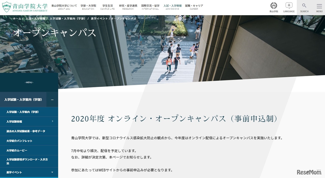 新型コロナウイルスの影響で、各大学のオープンキャンパスや相談会は中止となっているが、オンラインを利用して行う大学が増えている。明治大学はオンラインによる相談会、立教大学と青山学院大学はオープンキャンパスを実施する。