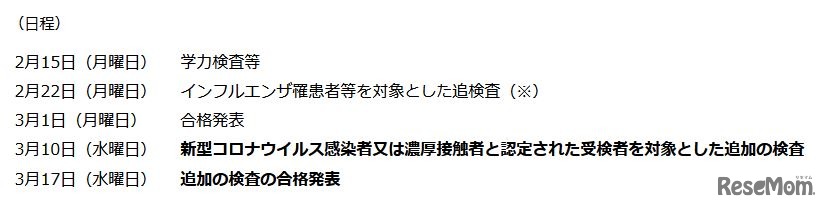 新型コロナウイルス感染者または濃厚接触者を対象とした追加の検査の日程