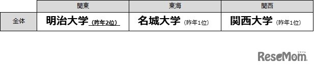 リクルートマーケティングパートナーズは2020年7月16日、「進学ブランド力調査2020」の結果を発表した。「高校生が志願したい大学」は、関東エリアで「明治大学」が4年ぶりの1位。東海エリアは「名城大学」、関西エリアは「関西大学」が1位となった。