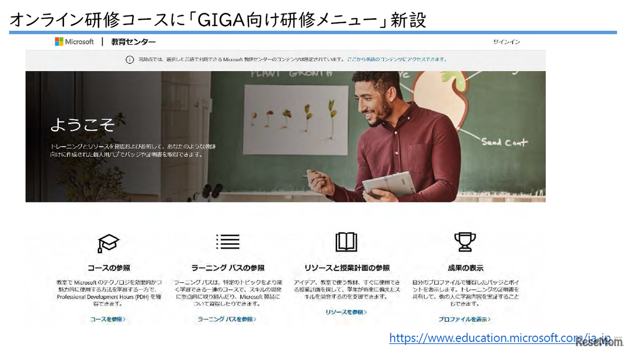 マイクロソフトの「教育センター」サイトのオンライン研修コース