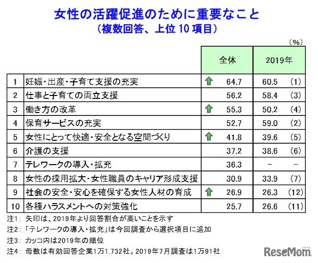 女性の活躍促進のために重要なこと (c) TEIKOKU DATABANK, LTD.