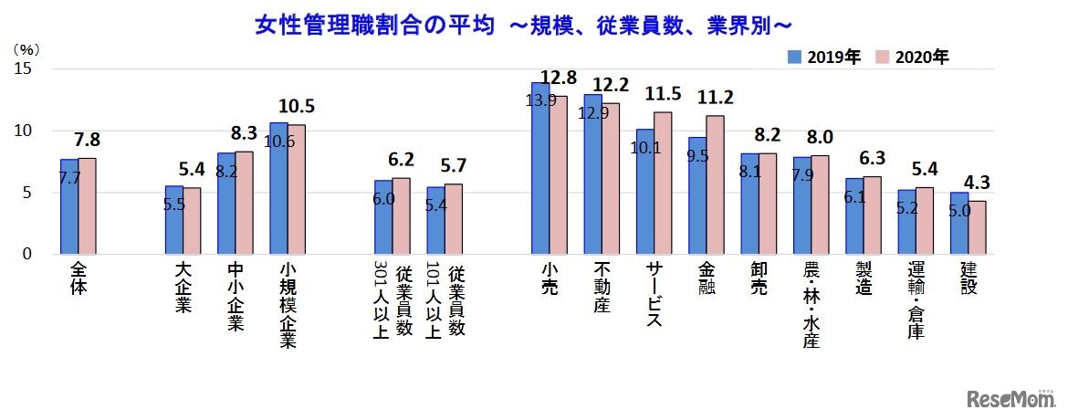 女性管理職割合の平均 (c) TEIKOKU DATABANK, LTD.