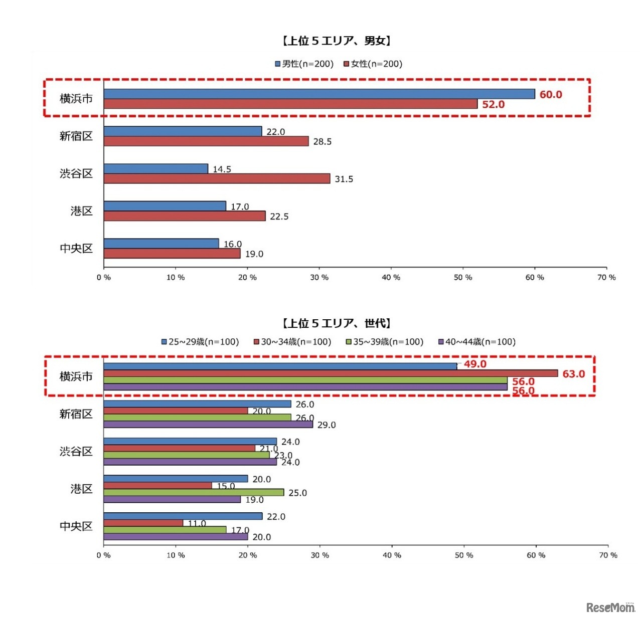 横浜エリアの住宅や不動産を紹介する総合サイト「横浜スタイル」を運営する日京ホールディングスは、男女400人を対象に1都3県38エリアに関する意識調査を実施。「人気の観光地にアクセスしやすい」エリアの1位に横浜市が選ばれた。