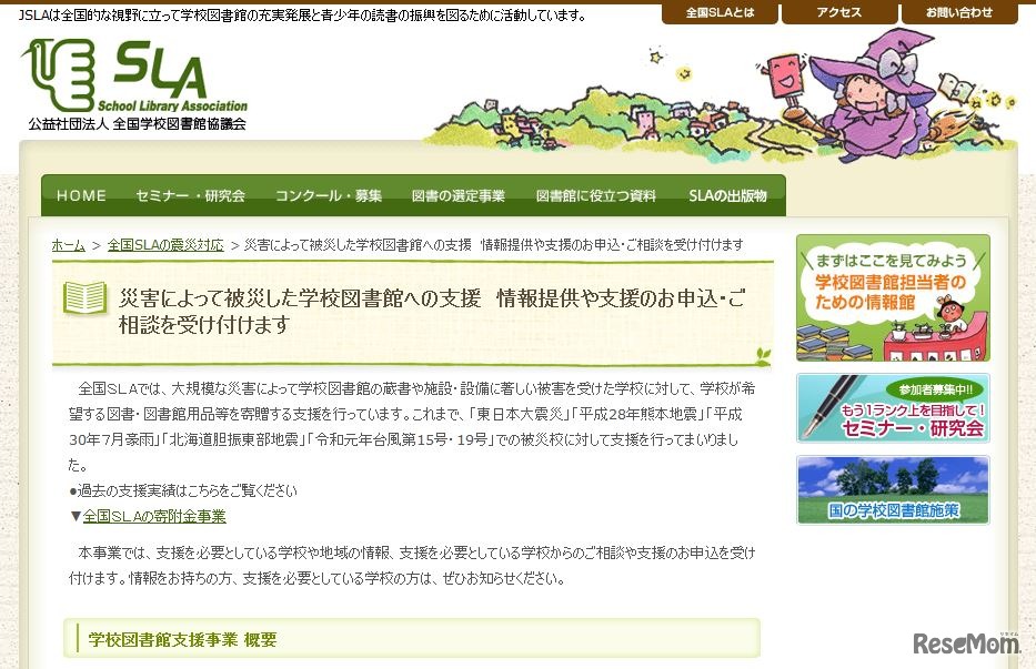 全国学校図書館協議会は、災害によって被災した学校図書館を支援している。2020年10月10日までを第1次集中受付期間とし、支援を必要としている学校や地域の情報、支援を必要としている学校からの相談や支援の申込みを受け付けている。