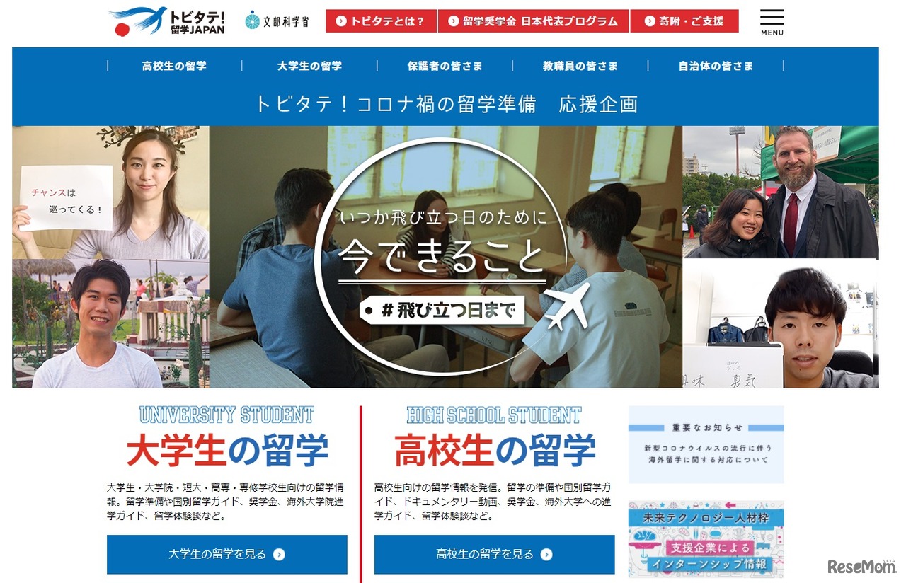 官民協働海外留学支援制度「トビタテ!留学JAPAN日本代表プログラム」は、高校生と大学生を対象にした進学講座をオンラインにて初めて公開する。留学の意義、国別の入学から卒業までの流れや、出願方法、奨学金制度などをわかりやすく伝えている。