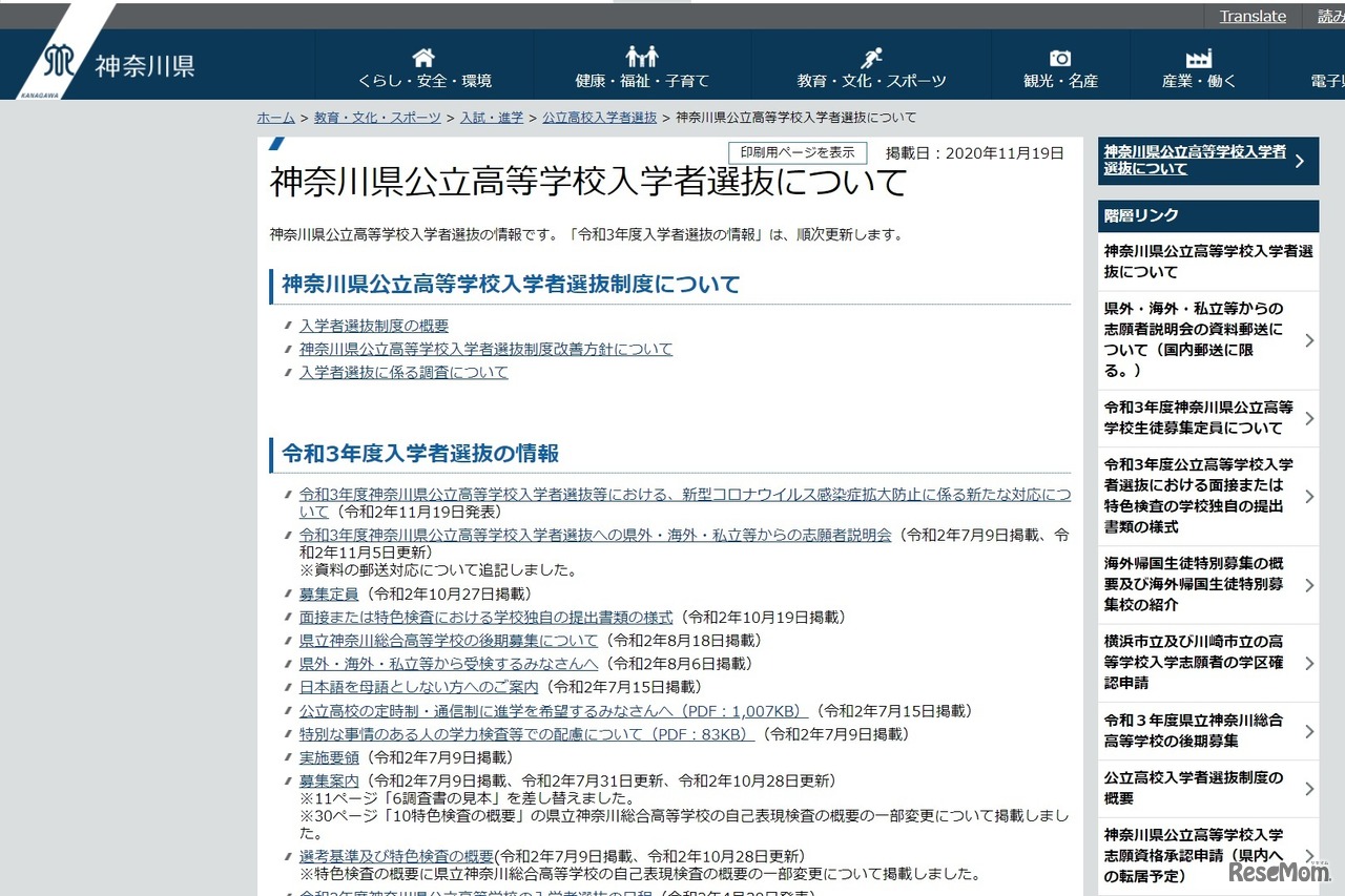神奈川県は2020年11月19日、2021年度(令和3年度)神奈川県公立高等学校入学者選抜等における、新型コロナウイルス感染症拡大防止に係る新たな対応について発表。感染者または濃厚接触者を対象とした「追加の二次募集」を実施することが新たに決定している。