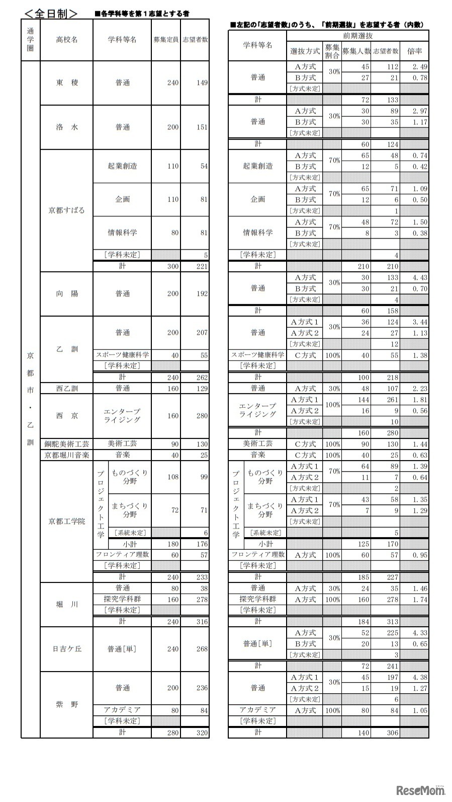 画像出典:京都府教育委員会 公立高等学校 学校別・学科別志望状況
