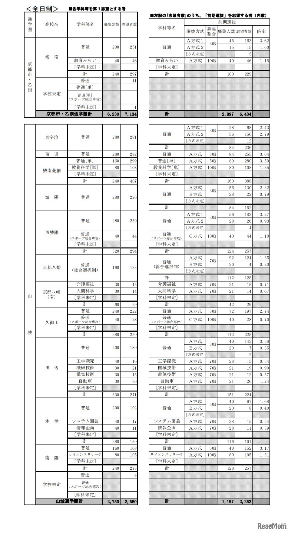 画像出典:京都府教育委員会 公立高等学校 学校別・学科別志望状況