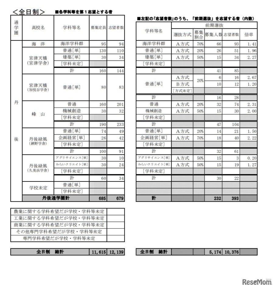 画像出典:京都府教育委員会 公立高等学校 学校別・学科別志望状況