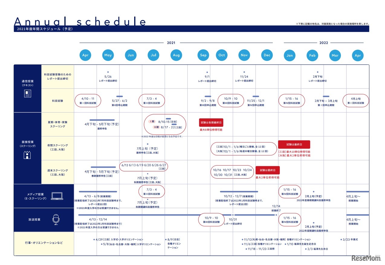 画像出典:慶應義塾大学 2021年度年間スケジュール(予定)