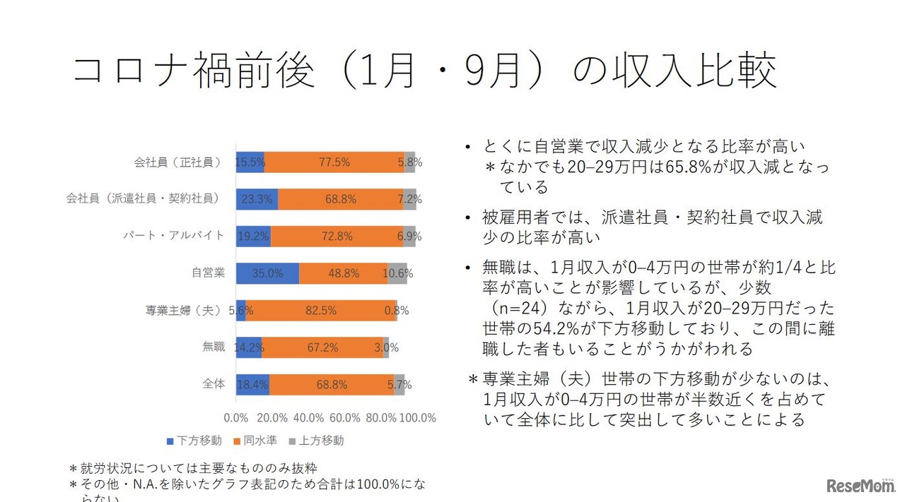 コロナ禍前後(1月・9月)の収入比較(保護者)